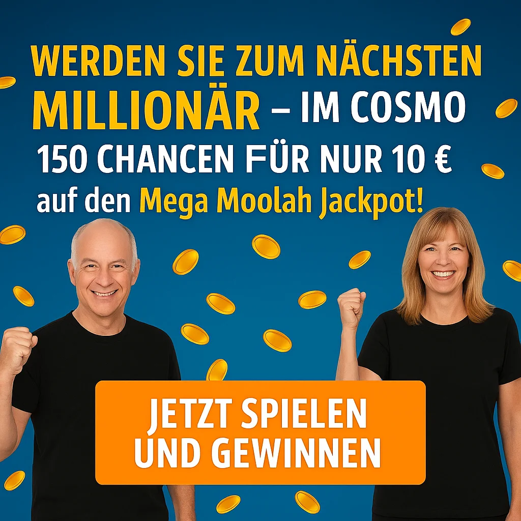Cosmo Casino Deutschland begrüßt dich mit 150 Freispielen bei deiner ersten Einzahlung – perfekt für riesige Gewinne z. B. bei Mega Moolah.